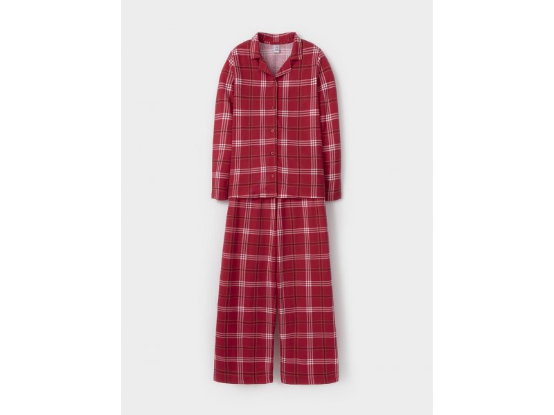 Трикотажная пижама свободного кроя из натурального хлопка. Рубашка на пуговицах с длинными втачными рукавами и прямые брюки с эластичной резинкой в поясе. Пижама отлично подойдёт для создания уютных домашних образов или в качестве подарка на Новый год и Рождество. Оригинальная набивка выполнена из стойких текстильных гипоаллергенных красителей. Изделие сохраняет цвет и форму после многократных стирок. Все трикотажные полотна производятся в соответствии с нормами швейцарского сертификата ЭкоТекс.