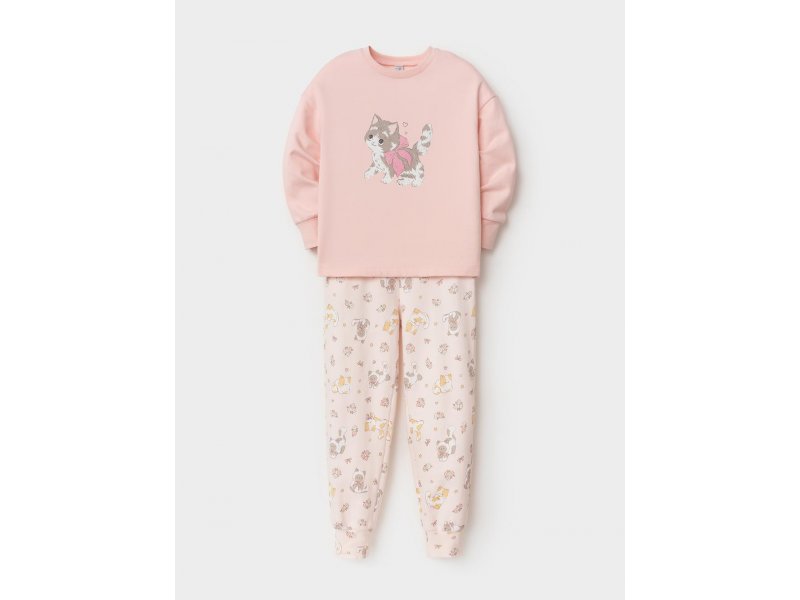 Тёплая пижама с начёсом из натурального хлопка. Джемпер с длинными спущенными рукавами и брюки с эластичной резинкой в поясе. Мягкие манжеты на рукавах и по низу брюк. Оригинальные набивка и принт выполнены из стойких гипоаллергенных текстильных красителей. Изделие сохраняет цвет и форму после многократных стирок. Все трикотажные полотна производятся в соответствии с нормами швейцарского сертификата ЭкоТекс. Состав: 100% хлопок. Ткань: Футер начес