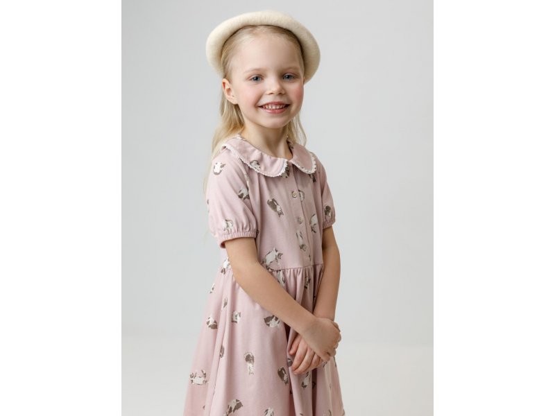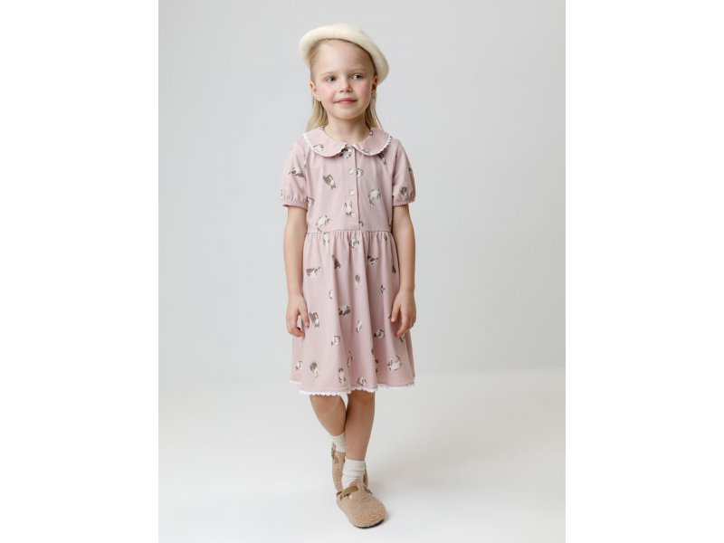 Платье для девочки с короткими рукавами из высококачественного гладкого трикотажа.