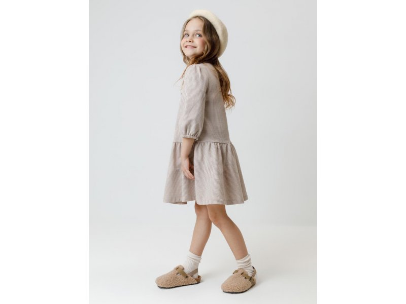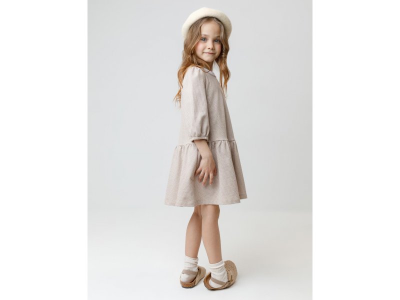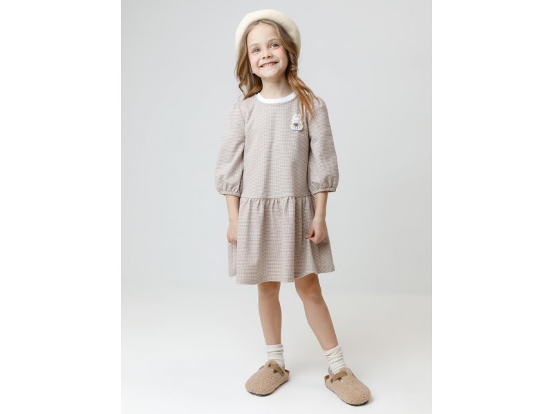 Платье для девочки с короткими рукавами из мягкого петельчатого трикотажа.