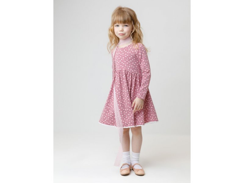 Платье для девочки с длинными рукавами из высококачественного гладкого трикотажа.