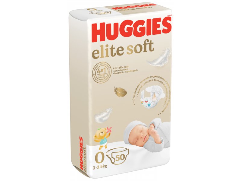 Подгузники Huggies Elite Soft 0 (0-3,5 кг) для новорожденных, 50 шт.
