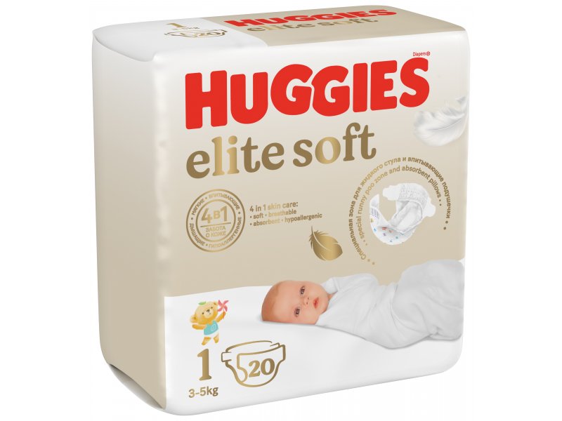 Подгузники Huggies Elite Soft 1 (3-5 кг) для новорожденных, 20 шт.