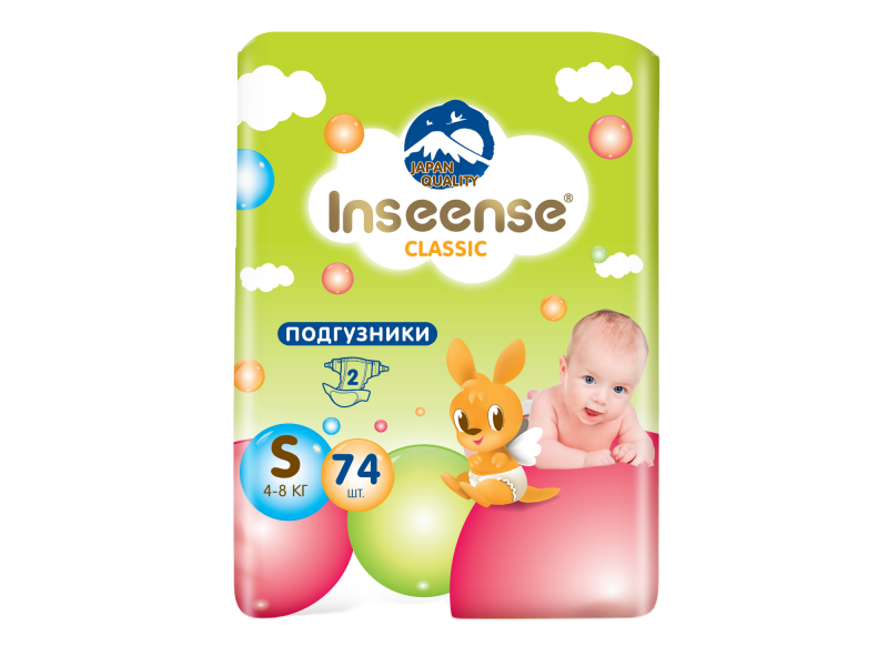 Подгузники Inseense Classic Plus S (4-8 кг) 74 шт