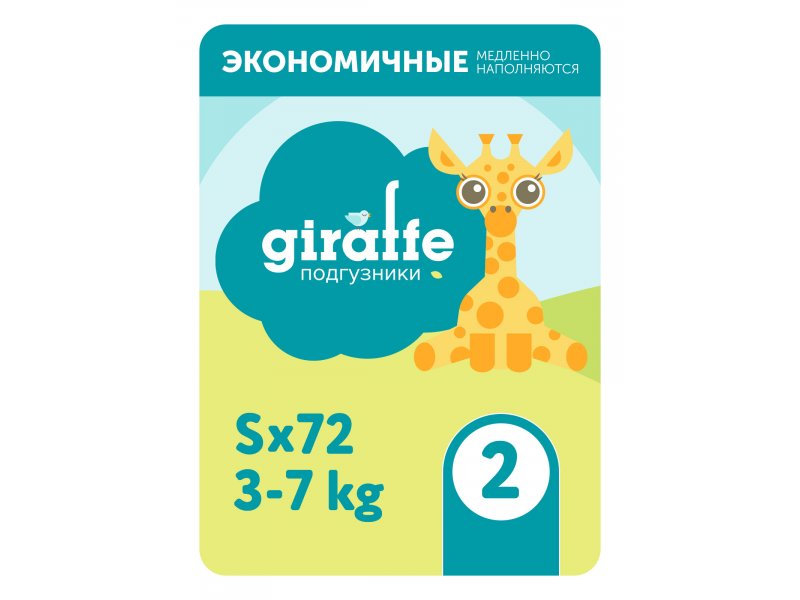 Подгузники Lovular Giraffe S 3-7 кг, 72 шт. 1-00259219