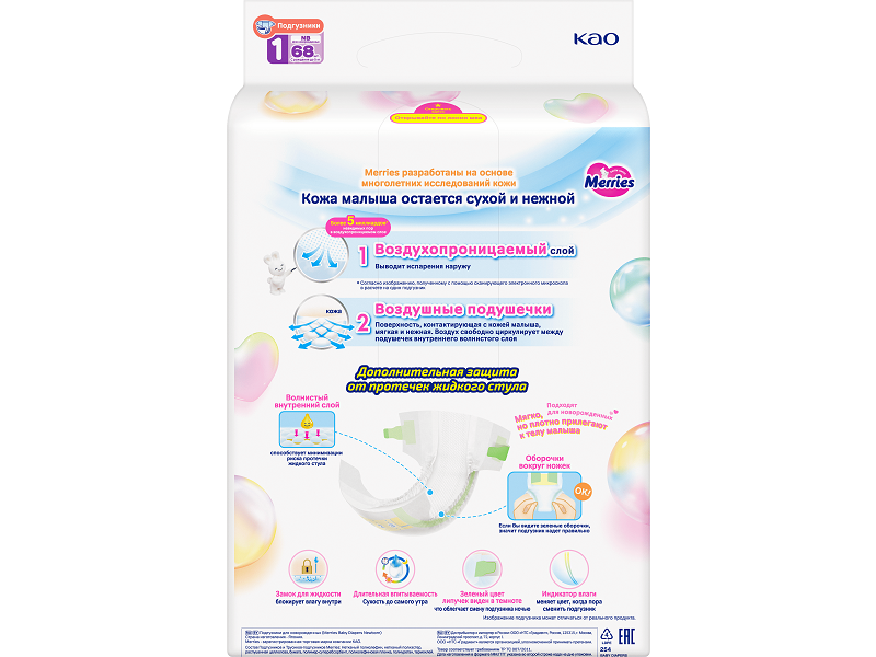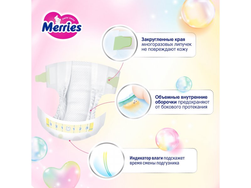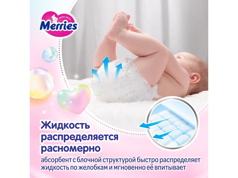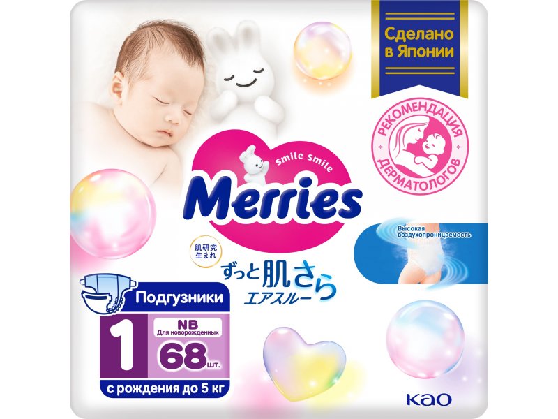 Подгузники Merries NB до 5 кг, 68 шт.