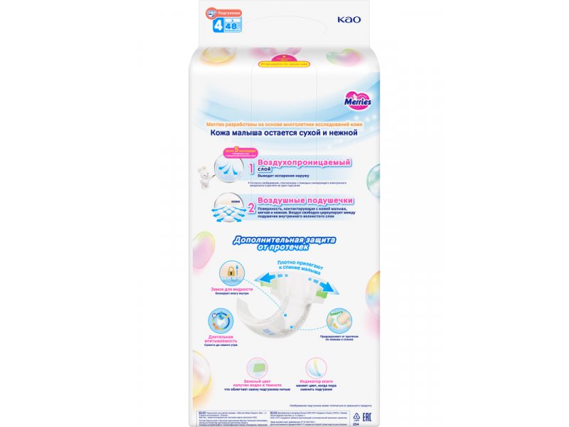 Подгузники Merries размер L 9-14 кг, 48 шт.