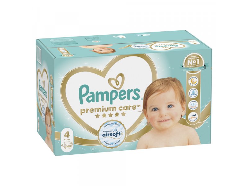 Подгузники Pampers Premium Care Maxi 9-14 кг, Мега Супер Упаковка, 108 шт.