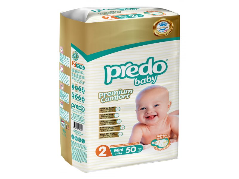 Predo Baby Подгузники № 2 Mini предназначены для детей весом от 3 до 6 кг. В упаковке 50 подгузников.