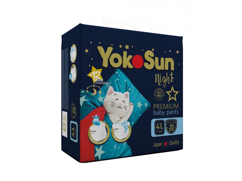Подгузники-трусики ночные YokoSun Premium L 9-14 кг, 20 шт 1-00476056