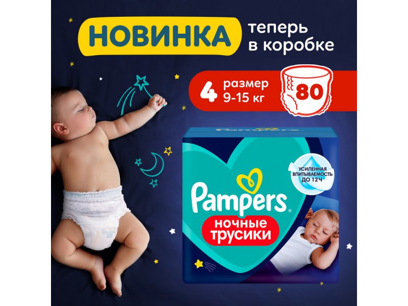 Подгузники-трусики Pampers ночные Maxi (9-15 кг) 80шт