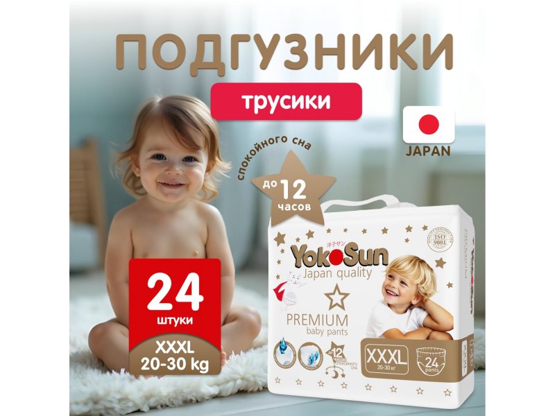 Подгузники-трусики YokoSun Premium XXXL 20-30 кг, 24 шт