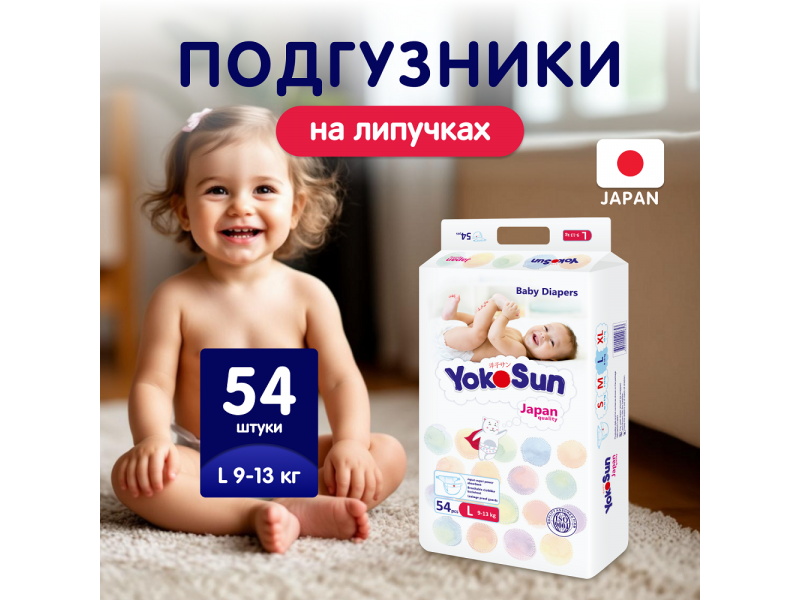 Подгузники детские YokoSun L (9-13 кг) 54 шт.