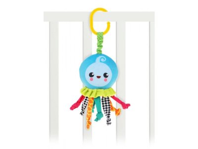 Эту милую подвеску в виде осьминожки можно закрепить на детской кроватке, коляске и люльке-переноске при помощи специального разъемного колечка.