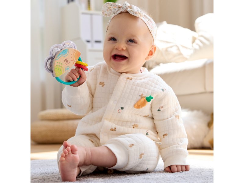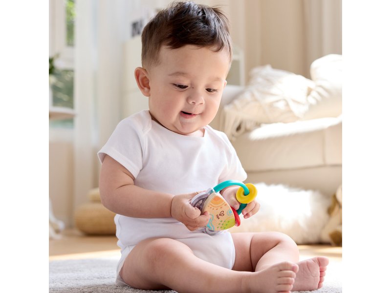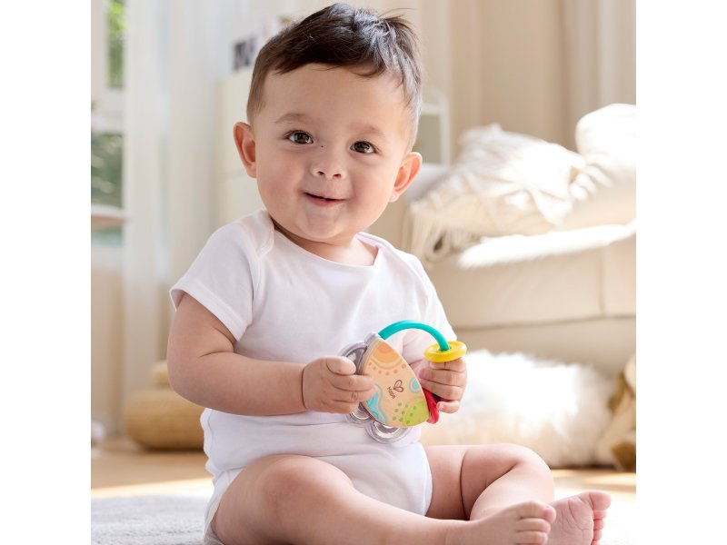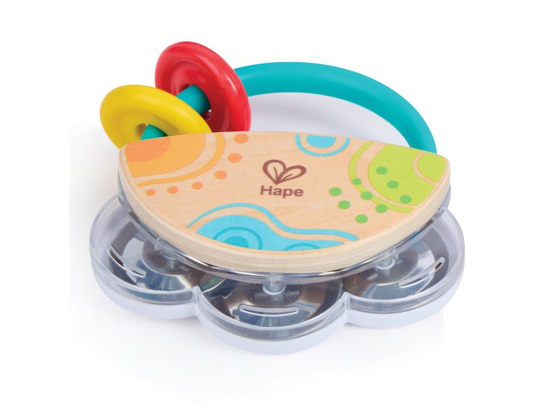 • Звуковые элементы — металлические тарелочки из нержавеющей стали — заключены в пластиковый "футляр", обеспечивая безопасность и долговечность игрушки.