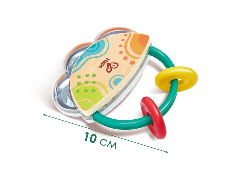• Игрушка выполнена в форме небольшого бубна длиной всего 10 см, что делает её идеальной для маленьких ручек.