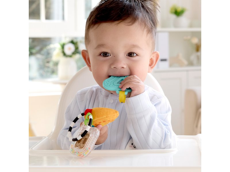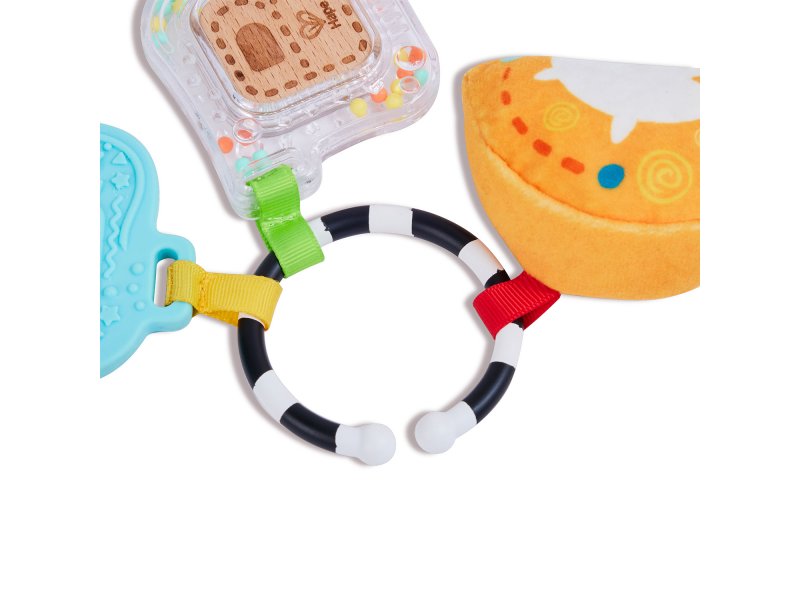 • Комплектация: кольцо, прорезыватель в виде буквы "A", погремушка в форме буквы "B" и мягкая игрушка с буквой "C".