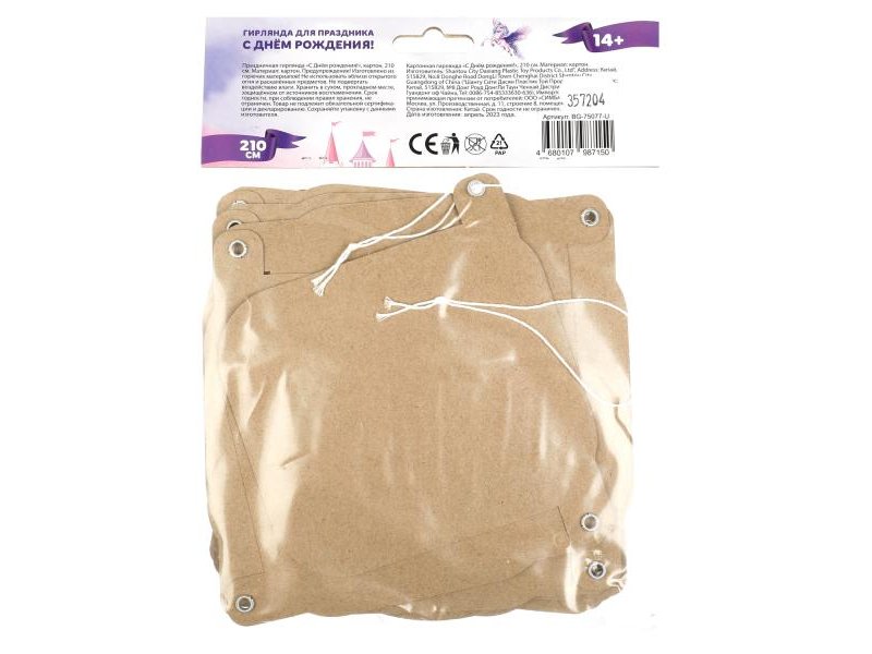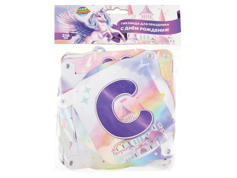 Праздничная гирлянда 210 см, с днем рождения Товары для праздника в кор.12*24шт