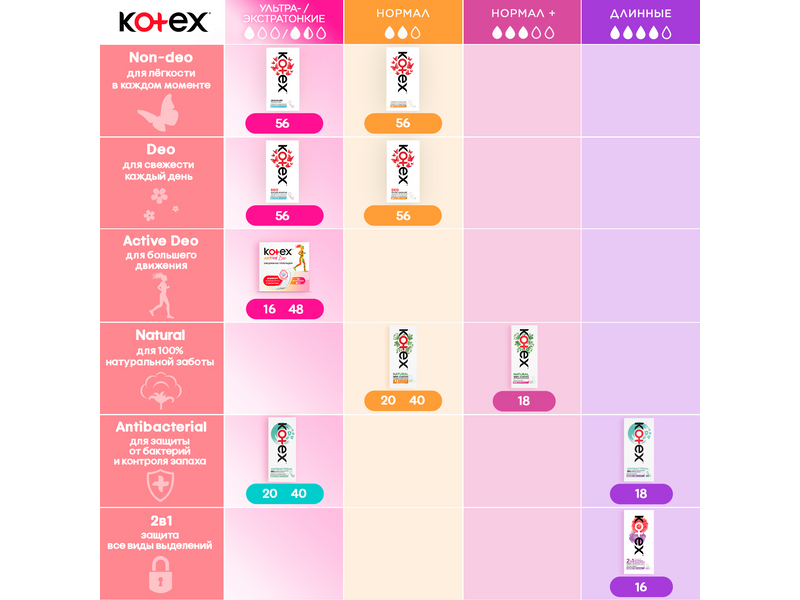 Тонкие ежедневные прокладки Котекс Нормал помогают чувствовать комфорт и свежесть каждый день!