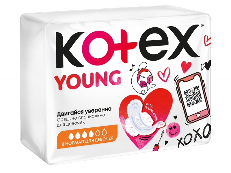 Прокладки Kotex Young Нормал гигиенические для девочек, 8 шт