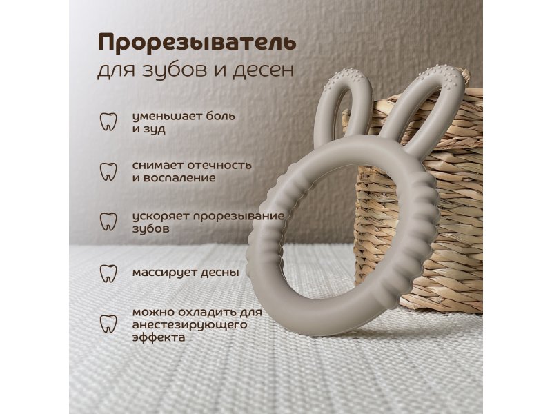 Современный трендовый дизайн для модных мам и малышей. Прорезыватель поможет уменьшить неприятные ощущения во время прорезывания зубов. Подходит для использования с первых стадий прорезывания зубов. Для достижения дополнительного анестезирующего эффекта можно положить прорезыватель в холодильник на 10 минут. Благодаря различным рельефным поверхностям успокаивает и массирует раздраженные десны, способствует развитию мелкой моторики. Изготовлен 100% из безопасного пищевого силикона. Антиаллергенный, без вкуса и запаха. Удобная форма для захвата детской ручкой. Расцветка подходит мальчикам и девочкам.