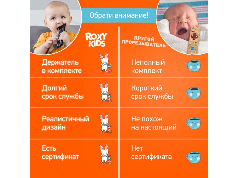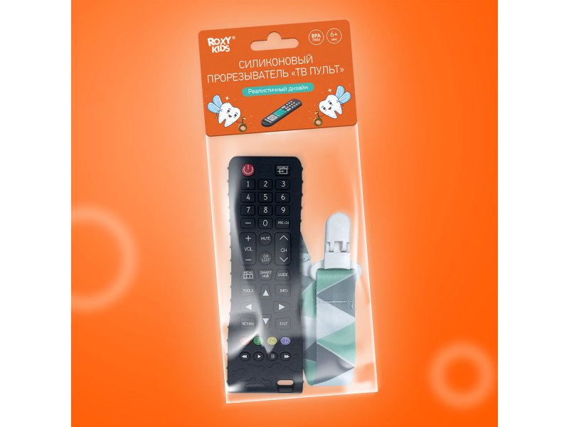 Реалистичный прорезыватель в виде ТВ-пульта от ROXY-KIDS – яркая и интересная игрушка, которая порадует вашего малыша и поможет снизить дискомфорт во время прорезывания зубов!
