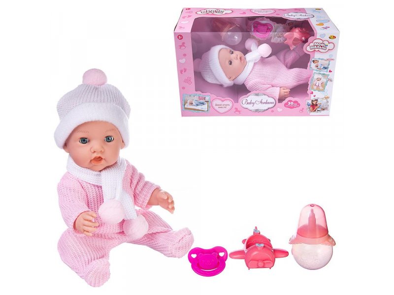 Пупс ABtoys Baby Ardana в розовом комбинезончике, шапочке и шарфике с акс., 30 см
