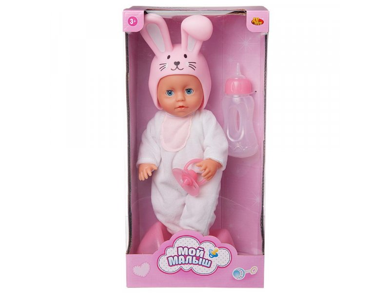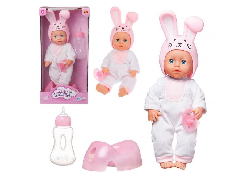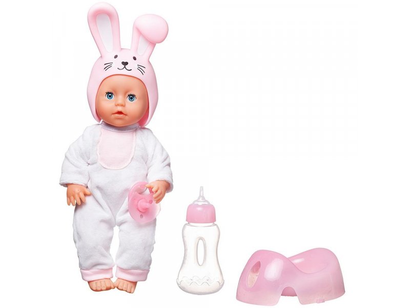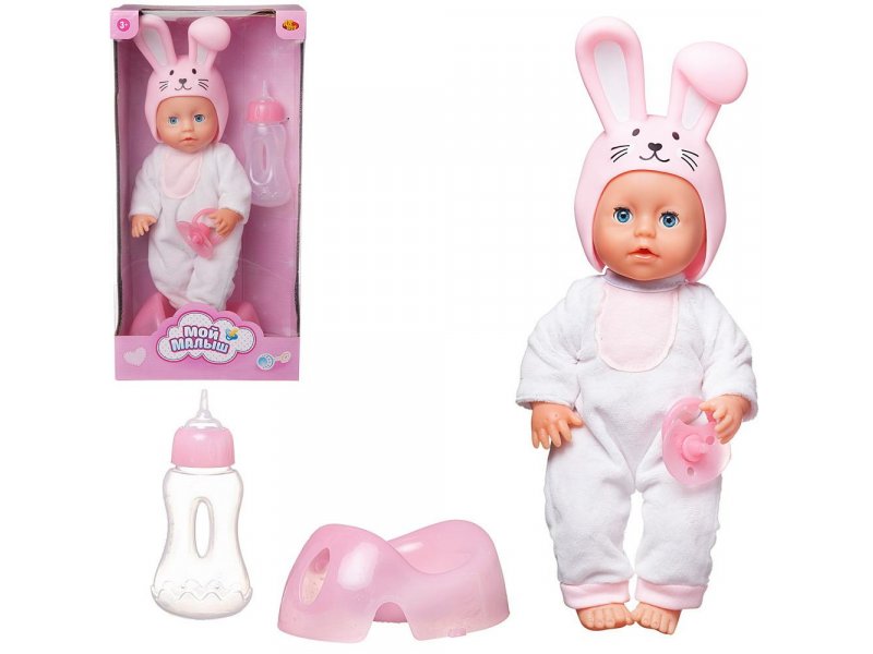 Играть с пупсом любит каждая девочка, ведь игра в «Дочки-матери» - важная и неотъемлемая часть ее детства. Очаровательный пупсик из серии «Мой малыш» от бренда ABtoys обязательно ей понравится и станет любимой игрушкой. На нем одет костюмчик зайчика: мягкий белый комбинезон c розовой грудкой и оригинальная забавная розовая шапочка с улыбающейся заячьей мордочкой с типичными длинными ушками. Пупсик имеет твердое пластиковое тело, подвижные ручки и ножки. Кроху можно напоить водой из бутылочки, и он пописает, как настоящий младенец! Его глазки закроются, если его положить спать. Играя с пупсом, маленькая девочка будет развивать фантазию, воображение, коммуникативные способности, приобретать навыки заботы о близких. Высота пупса: 25 см. Комплектность: пупс – 1 шт., горшок – 1 шт., бутылочка для кормления – 1 шт., соска-пустышка – 1 шт. Материал: полимерный материал, текстиль. Батарейки для работы не требуются.