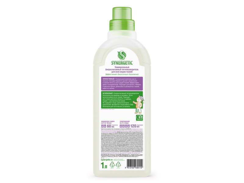 Пятновыводитель Synergetic универсальный для белья биоразлагаемый, 1 л