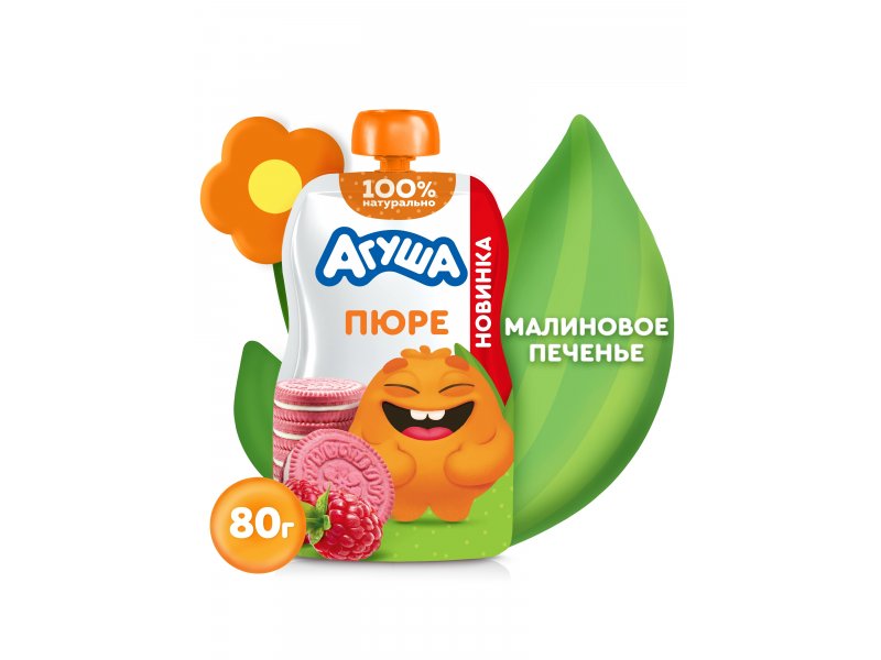 Пюре от Агуши со вкусом «Малиновое печенье» – это 100% натуральный десерт специально для подросших малышей.