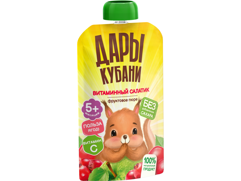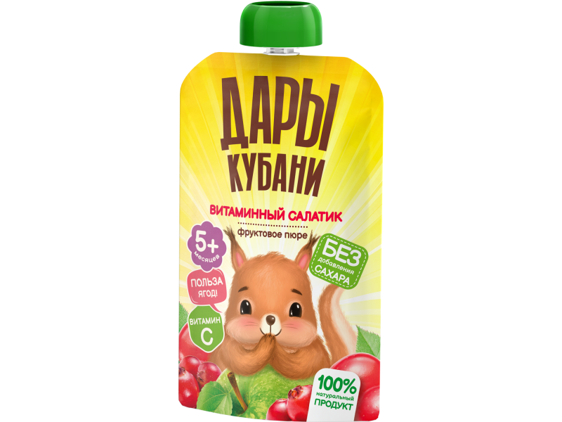 Изготовлено из яблочного пюре, шиповникового сока, клюквенного пюре, аскорбиновой кислоты (витамин С), воды питьевой.