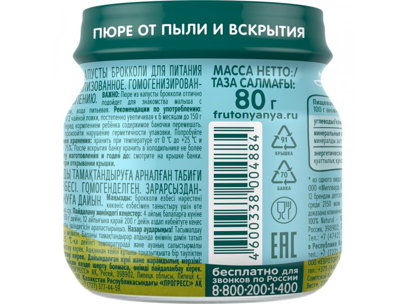 Пюре Фрутоняня Брокколи 80 г