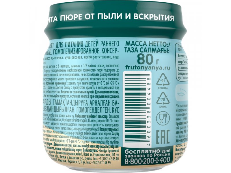 Пюре ФрутоНяня Цыпленок 80 г