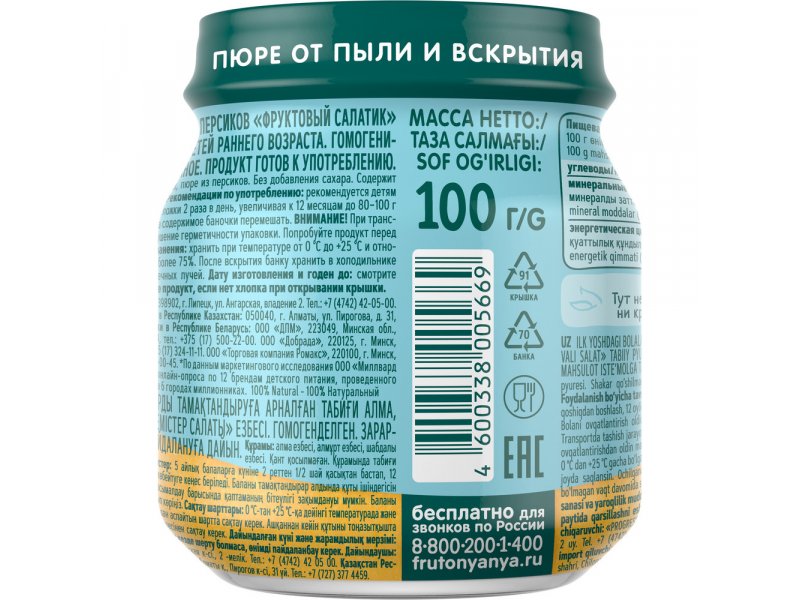 Пюре Фрутоняня Фруктовый салатик 100 г