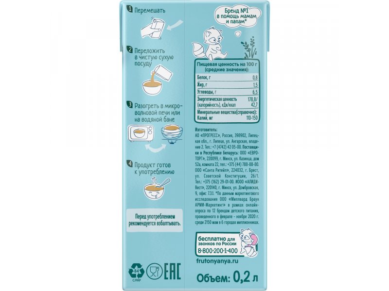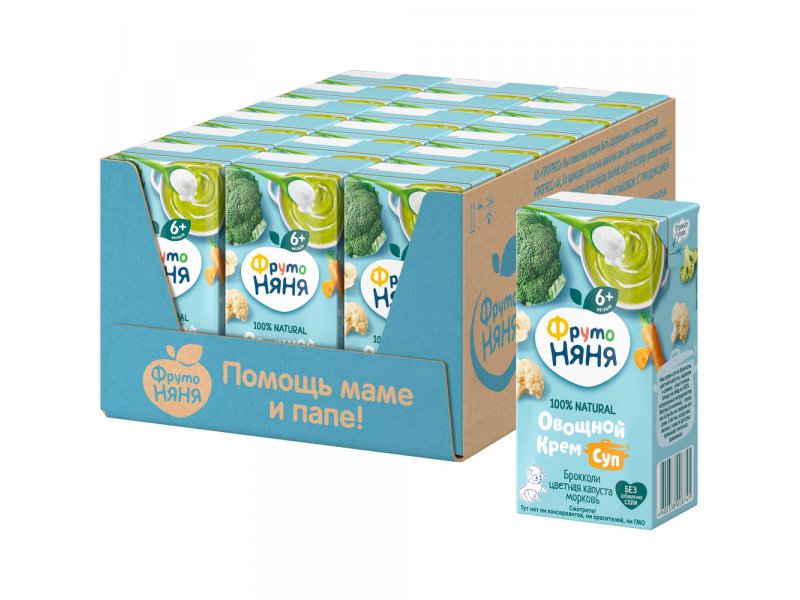 Крем-суп овощной Фрутоняня Брокколи, цветная капуста и морковь со сливками 200 мл