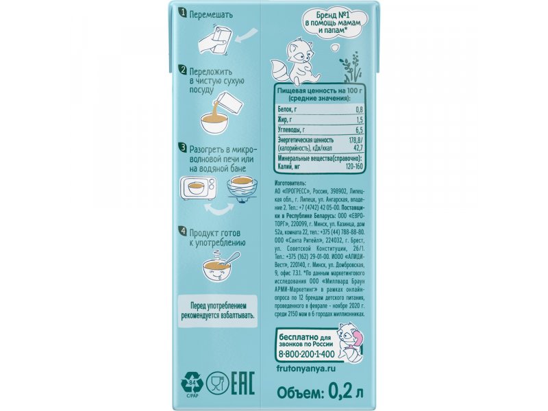 Крем-суп овощной Фрутоняня Тыква, картофель и морковь со сливками 200 мл