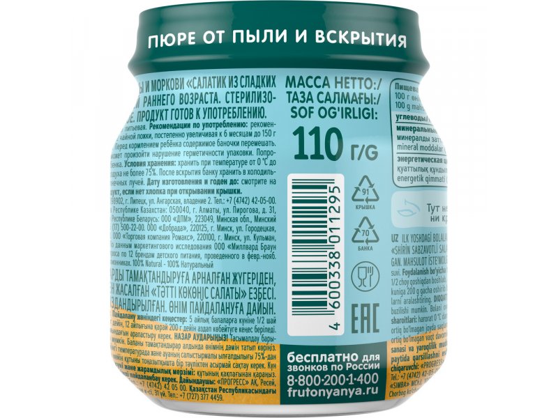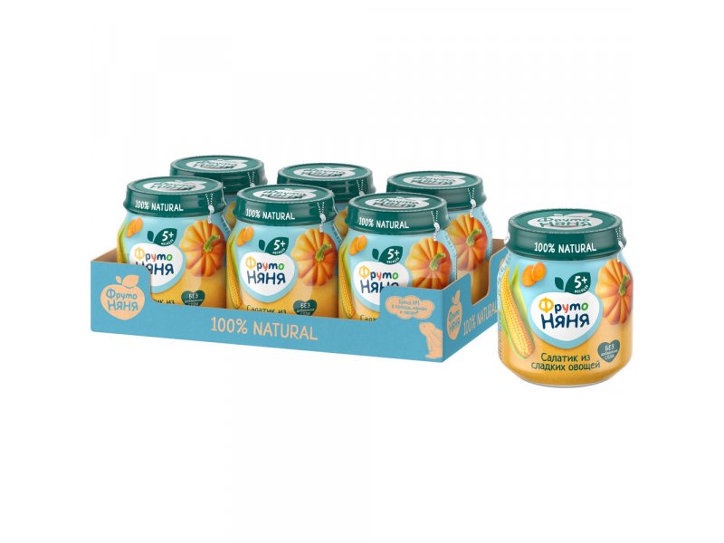 Пюре ФрутоНяня Салатик из сладких овощей Кукуруза, тыква, морковь 110 г