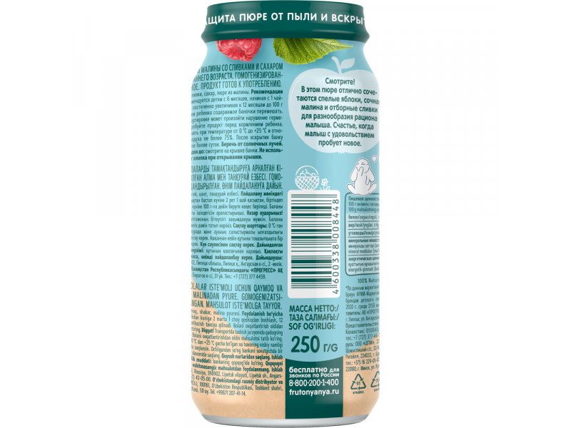 Пюре ФрутоНяня Яблоко малина со сливками 250 г