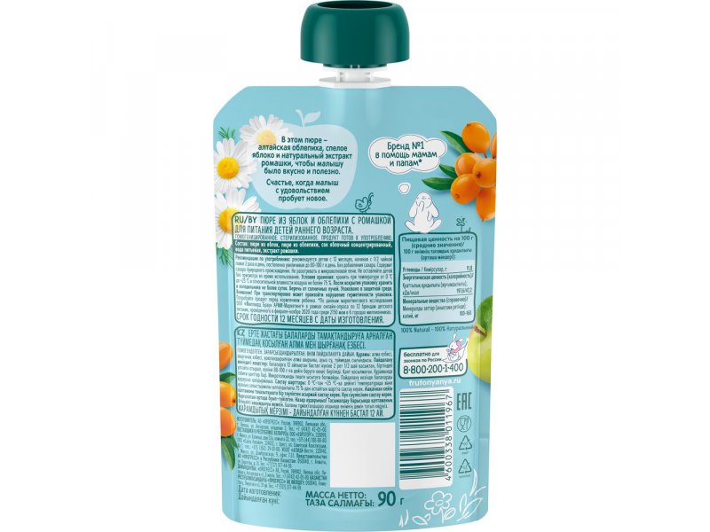 Пюре ФрутоНяня Яблоко, облепиха с ромашкой 90 г