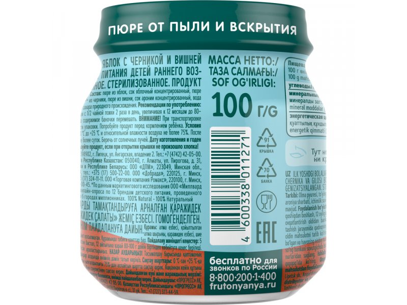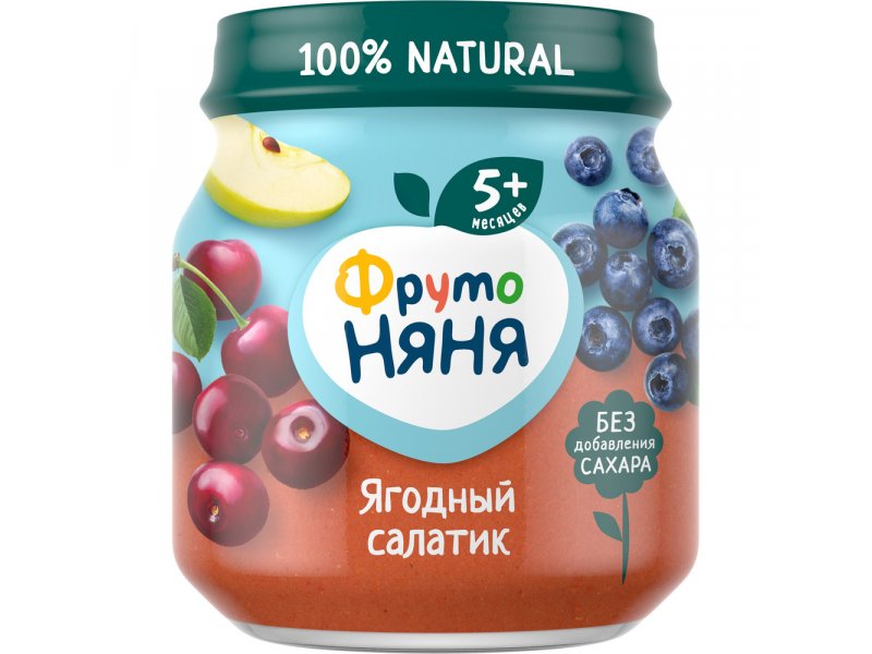 Пюре ФрутоНяня Ягодный салатик Яблоко, черника и вишня 100 г
