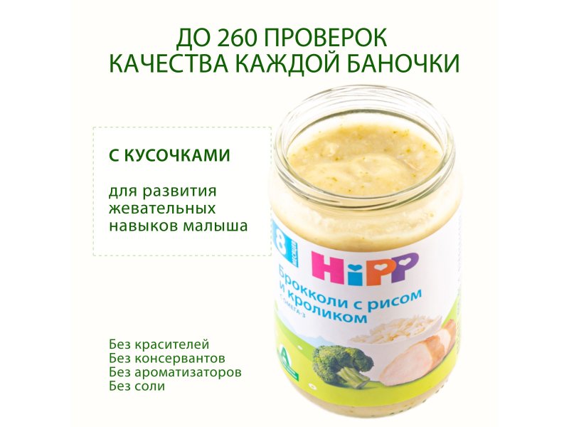 Пюре Hipp Брокколи с рисом и кролик 190 г