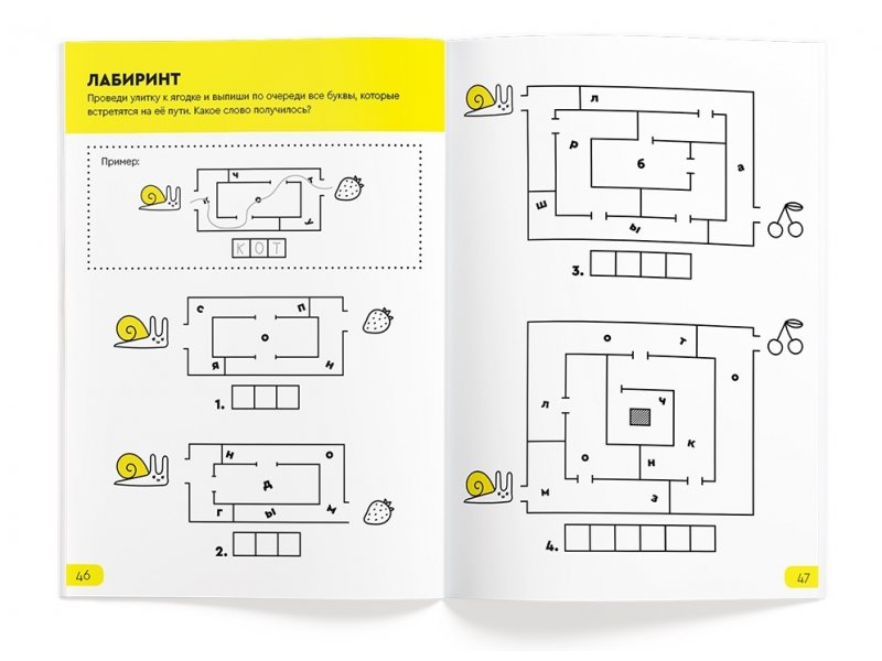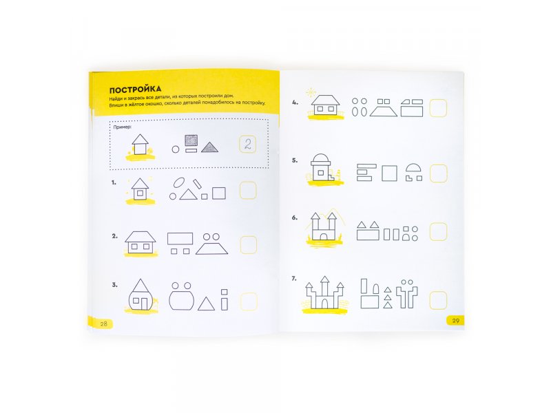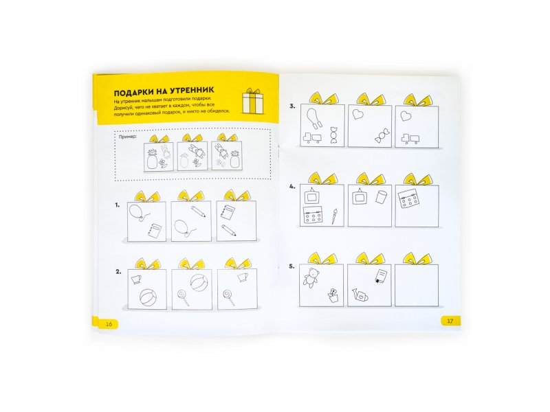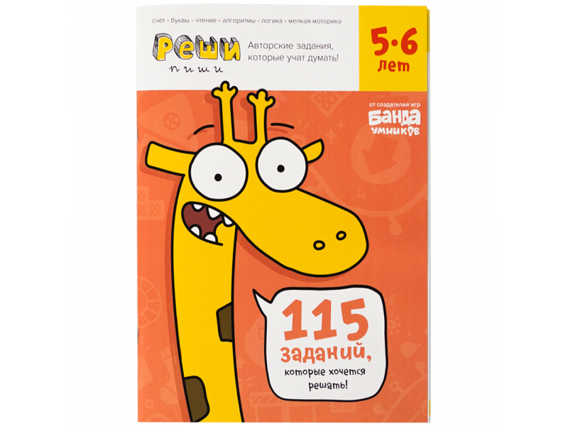 В тетради 23 типа заданий, варианты которых постепенно переходят от легкого к сложному. Одни задания помогут развитию логического и пространственного мышления, другие — разобраться в счете и числовых рядах, а часть заданий прокачают знание букв и умение читать. Часть из них доступны для распечатки на нашем портале "Реши-Пиши", а 60% — это эксклюзивные задания, которые мы придумали специально для тетрадей. Решать их интересно и полезно при подготовке к школе и в начальных классах.