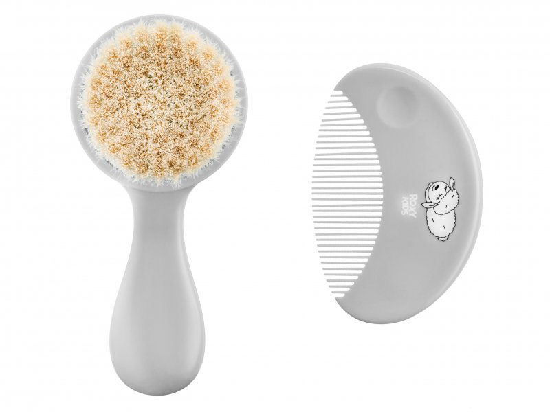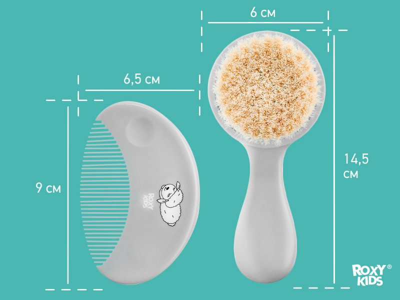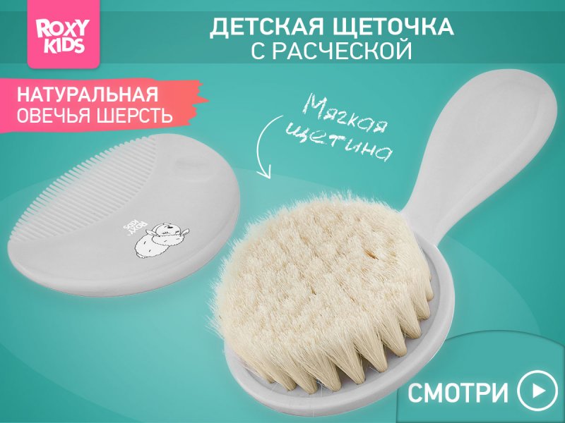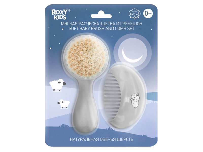 Расческа-щетка с мягким ворсом из натуральной овечьей шерсти и удобный гребешок ROXY-KIDS предназначены для малышей и новорожденных.