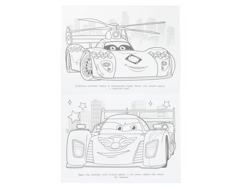 Эта увлекательная раскраска про гоночные машинки оригинальной супергеройской расцветки непременно понравится вашему ребёнку. В ней он найдёт интересные картинки с чёткими контурами и сюжетными текстами к ним. Данное издание станет отличным вариантом, чтобы взять его с собой в путешествие и скоротать время в дороге за раскрашиванием.