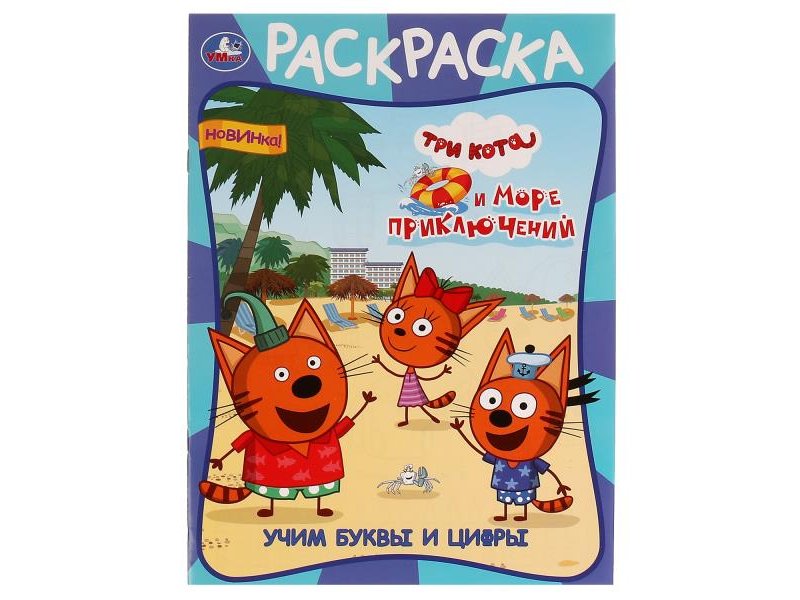 Раскраска «Три кота и море приключений. Учим буквы и цифры» ТМ «УМка» станет отличным подарком для юных художников: