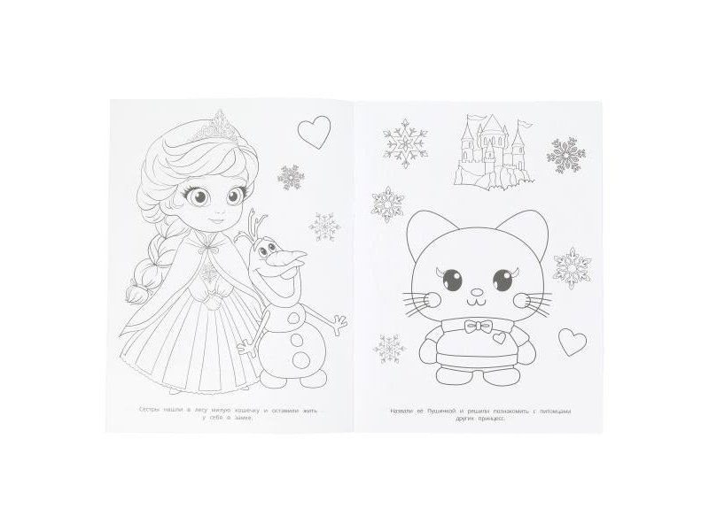 Раскраска с увлекательной историей про то, как очаровательные сёстры-принцессы нашли в лесу милую кошечку и оставили её жить у себя, непременно понравится вашему ребёнку. В ней он найдёт интересные картинки с чёткими контурами и сюжетными текстами к ним. Данное издание станет отличным вариантом, чтобы взять его с собой в путешествие и скоротать время в дороге за раскрашиванием.