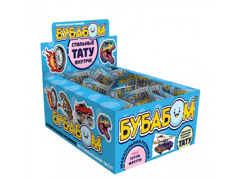 Коллекция тату разработаны в соответствии "пацанскими" предпочтениями. Жевательная резинка БУБАБОМ с татуировкой для мальчиков упакована в голубую обертку и поставляется в ярко-голубом дисплее с изображением татуировок-вкладышей. В коллекции 14 крутых переводных татуировок, которые подчеркнут смелость, храбрость и отважность их обладателя: тигр, динозавр, гоночная машина и другие потрясающие татушки с мужским характером. Парни будут в восторге!
