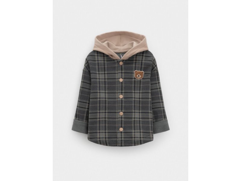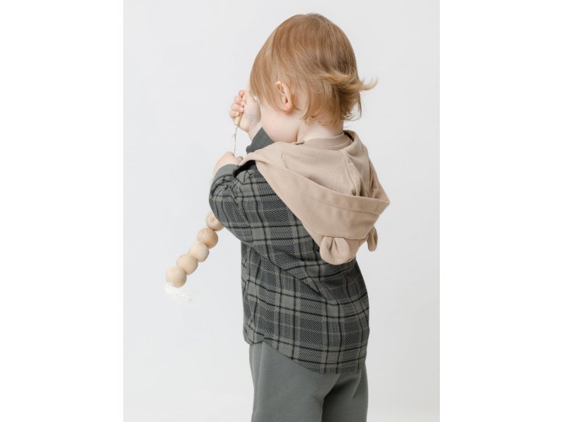 Застёгивается на кнопки. Модель с капюшоном и декоративными ушками. Рисунок в клетку выполнен из стойких текстильных гипоаллергенных красителей. Изделие сохраняет цвет и форму после многократных стирок.