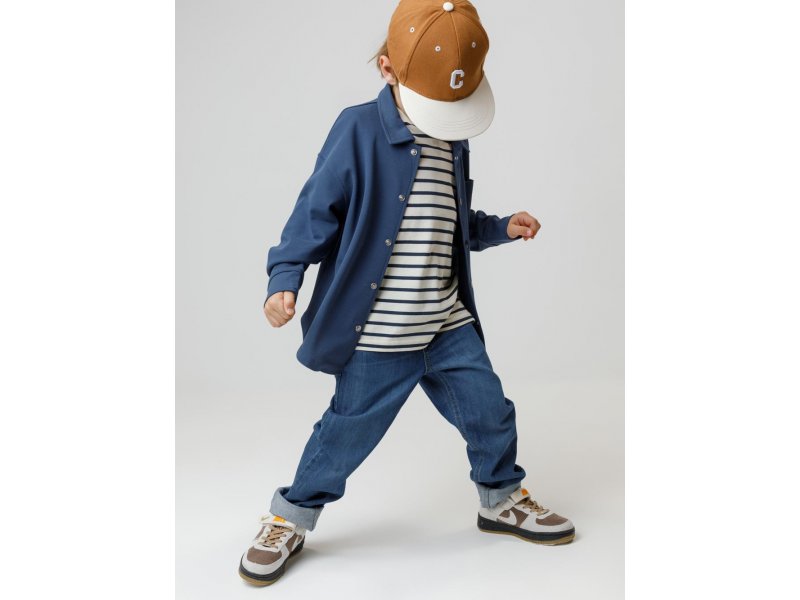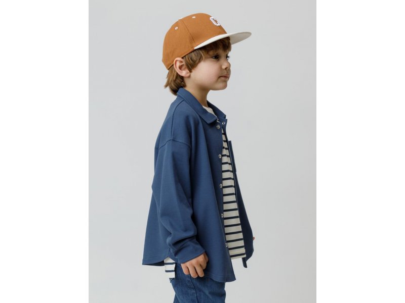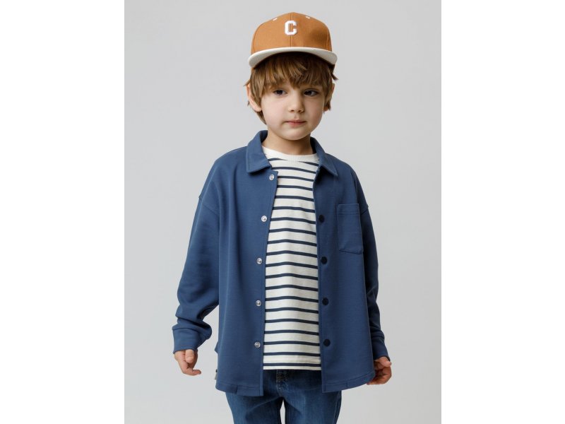 Свободная трикотажная рубашка для мальчика из мягкого трикотажа пике. Застёгивается на кнопки. Модель с закругленным низом и спущенным плечом. Все трикотажные полотна производятся в соответствии с нормами швейцарского сертификата ЭкоТекс. Состав: 65% хлопок, 35% полиэстер. Ткань: Пике