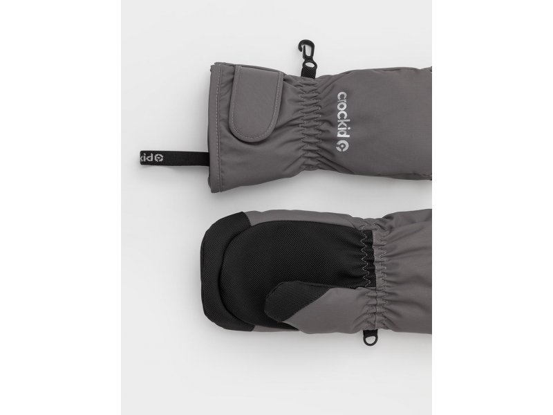 Детские утеплённые рукавицы из однотонной мембранной ткани со вставками из искусственной кожи. Удлинённые манжеты на молнии. Мягкий подклад из флиса. Пластиковый карабин для скрепления рукавиц между собой. Светоотражающие элементы. Состав: верх: 80% нейлон, 20% полиуретан; подклад: 100% полиэстер; Утеплитель: 100% полиэстер